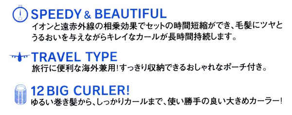 クレイツイオンの効果でセット時間が短縮でき、髪にツヤとうるおいを与えながらキレイなカールが長時間持続します。